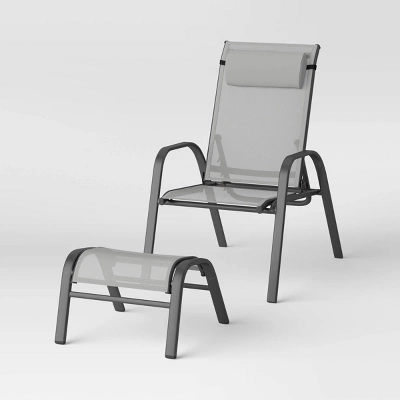 Create memories enjoying conversation with a loved one using this Five-Piece Adjustable Back Patio Chat Set from Room Essentialsā¢. This five-piece patio chat set includes two adjustable-back chairs, two ottomans and one table to help create a complete relaxation spot. The chairs with arms feature a headrest to help provide complete support while the ottomans provide the perfect spot to rest your feet. Designed in gray, this patio furniture set goes well with a range of home decor styles and palettes, and withstands outdoor elements with their weather- and rust-resistant design.
