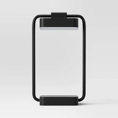 Add a simple lighting solution to your home with this Panel Task Lamp (Includes LED Light Bulb) from Room Essentialsā¢. This task lamp features a square shade along with a rectangle base for a sleek, unique look. Great to cast light on your space to help you work or study in comfort, this solid-color task lamp lights up easily with base push button and comes with one-way light setting.